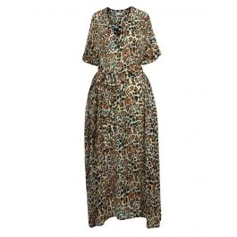 Der Seidenkaftan Leonissima kann als gemütliche Homewear getragen werden, als Sommerkleid oder wird in Kombination mit Bademode zu einem schicken Kleidungsstück für den Urlaub. Das Leopard Muster hat die Farben schwarz und nougat auf einem ecru-farbenen Hintergrund, kombiniert mit rosa und taupe-farbenen Tupfen.