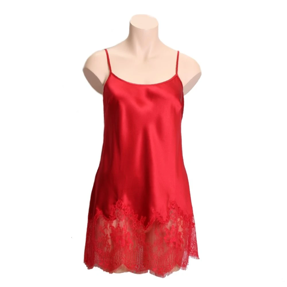 Dieses kurze Seidennegligé ist ca. 75-80 cm lang und hat verstellbare Spaghetti-Träger. Es ist in den folgenden Farben erhältlich: