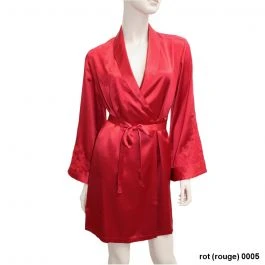 Dieser kurze Seiden-Morgenmantel ist ca. 90 cm lang und hat lange Ärmel.