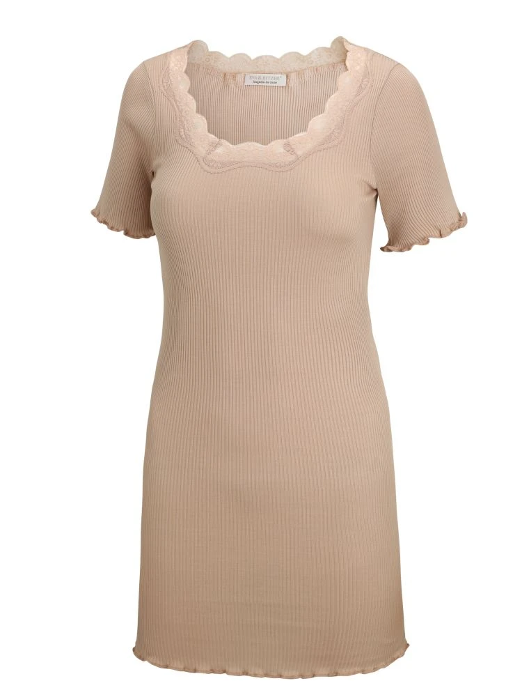 Die Hochwertigkeit des Stoffes (70% Seide, 30% Baumwolle) wird durch den klassischen Schnitt und die Verzierung mit floraler Wäschespitze (100% Polyester) unterstrichen. Das Nachtkleid hat kurze Ärmel und eine unkomplizierte Passform. Es kann als als Nachtwäsche und Homewear getragen werden.