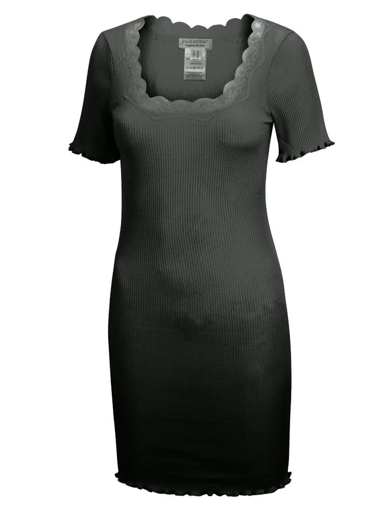 Seide Baumwolle Sleepshirt Ripp schwarz oder naturweiß von Eva B. Bitzer