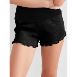 Die Hochwertigkeit des Stoffes (70% Seide, 30% Baumwolle) wird durch den zeitlosen Schnitt und die Verzierung mit einem verspielten Saum (100% Polyester) unterstrichen. Die Shorts hat einen Gummizug und eine unkomplizierte Passform. Es kann als Nachtwäsche, sowie auch als Homewear getragen werden.