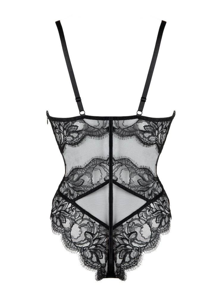 Der atemberaubende Lingerie Body von Prelude Milano ist Spitzenwäsche Made in Europe. Das edle Teil besteht aus Eye-Lash-Spitze, feinem Tüll und schmeichelndem Satin. Der Spitzen-Body hat verstellbare Spaghettiträger und Cups mit Bügeln. Aufgrund des verarbeiteten Materials ist dieser Body semitransparent.