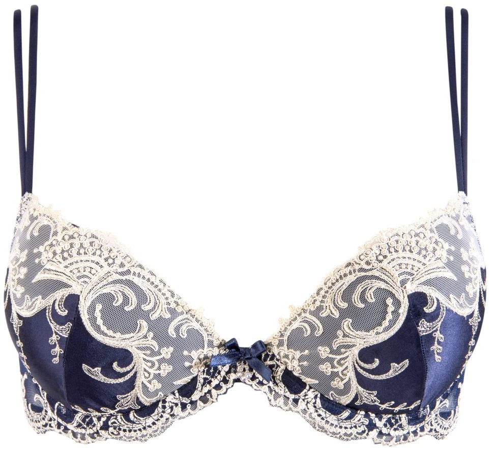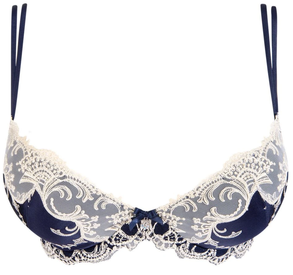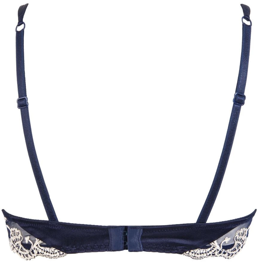 Der bezaubernde BH hat wattierte 3/4 Schalen mit Bügeln. Da die Cups gefüttert sind sorgen sie für ein angenehmes und sicheres Tragegefühl. Die Cups sind aussen größtenteils aus der feinen Seide. Der Rand der Cups ist aus dem feinen Tüll, welcher mit hochwertigen Stickereien versehen ist. Vorne am Mittelsteg ziert eine kleine Schleife mit Zierstrassstein den zauberhaften BH. Hinten und an den Seiten besteht der BH aus dem bestickten Tüll, wobei hinten ein kleiner Seideneinsatz eingefügt wurde, um den BH abzurunden. Die verstellbaren Träger aus Satin sind vorne doppelläufig und hinten längenverstellbar. Dieses edle Zusammenspiel der unterschiedlichen Materialien und Akzente formt sich zu einem unwiederstehlichen Bügel BH, der sowohl für den Alltag als auch für besondere Anlässe perfekt geeignet ist. Aus dieser zarten Kollektion gibt es weitere, ergänzende Kombinationsteile seperat in unserem Shop.