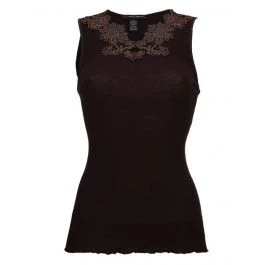Das Camisole Top Wolle-Seide besteht aus einem besonders hochwertigen gerippten Jersey aus 70% extrafeiner Merinowolle und 30% Seide in Kombination mit einer luxuriösen, bestickten Spitze. Dieses edle Shirt Top hat keine Ärmel und eine Gesamtlänge von ca. 60 cm. Das Decolleté ist mit Blüten-Spitze gestaltet und teiltransparent.