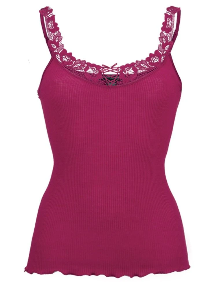 Merinowolle-Seide TRÄGER-TOP Mit Spitze Von Artimaglia