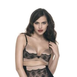 Der Fantasy- BH von Prelude Milano ist Spitzenwäsche Made in Europe. Das edle Teil besteht aus bestickter, floraler Tüll-Spitze. Die Cups sind nicht gefüttert und nicht geschäumt und somit transparent.