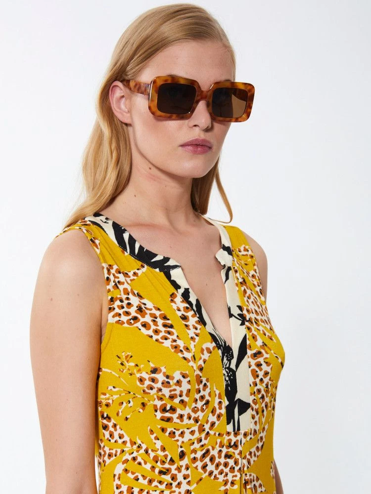 Dieses stylische Strandkleid von Fürstenberg aus der Kollektion „Santorini“ überzeugt durch seinen modischen Mustermix und die gut kombinierbare Farbstellung in maisgelb, creme, braun und schwarz.