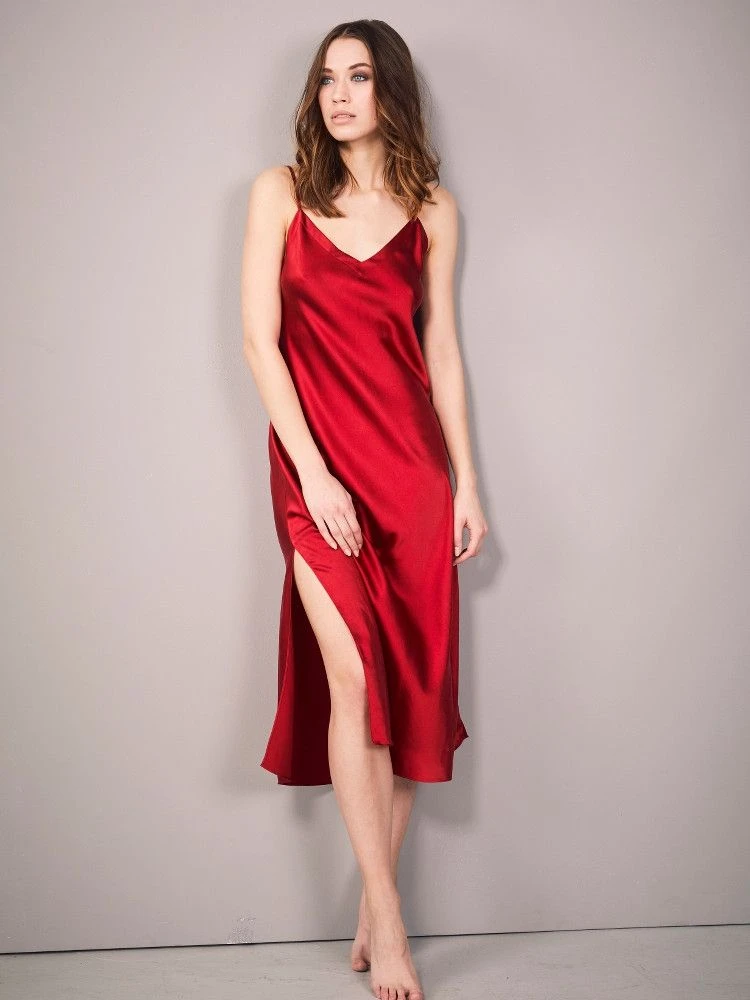 Das hautschmeichelnde, weiche Material aus 96% Seide fällt fließend und schmeichelt der Trägerin mit seinem edlen Glanz. Durch seine hochwertige Verarbeitung und die schicken Details ist dieses Seiden Nachtkleid auch als Unterkleid verwendbar. Dieses Damen Nachtkleid besteht aus Seidensatin. Die glatte Seide hat eine luxuriöse Ausstrahlung, umschmeichelt die Haut, wirkt temperaturausgleichend und kleidet perfekt zu (fast) jeder Tageszeit… Das Seiden Nachtkleid ist in den Größen XS bis XXL erhältlich, was den deutschen Damen- Größen 36 bis 46 entspricht.