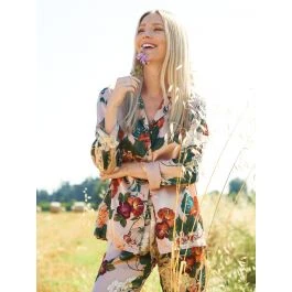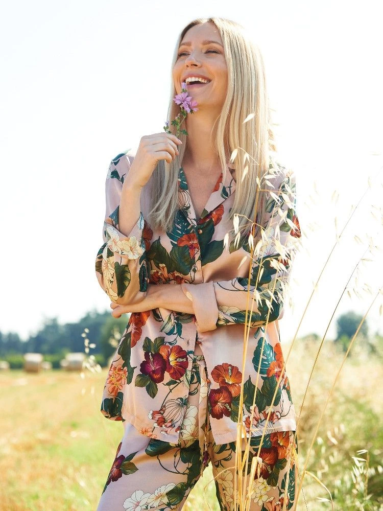 Pyjama Flowers rosa grün aus Viscose Satin von Chiara Fiorini