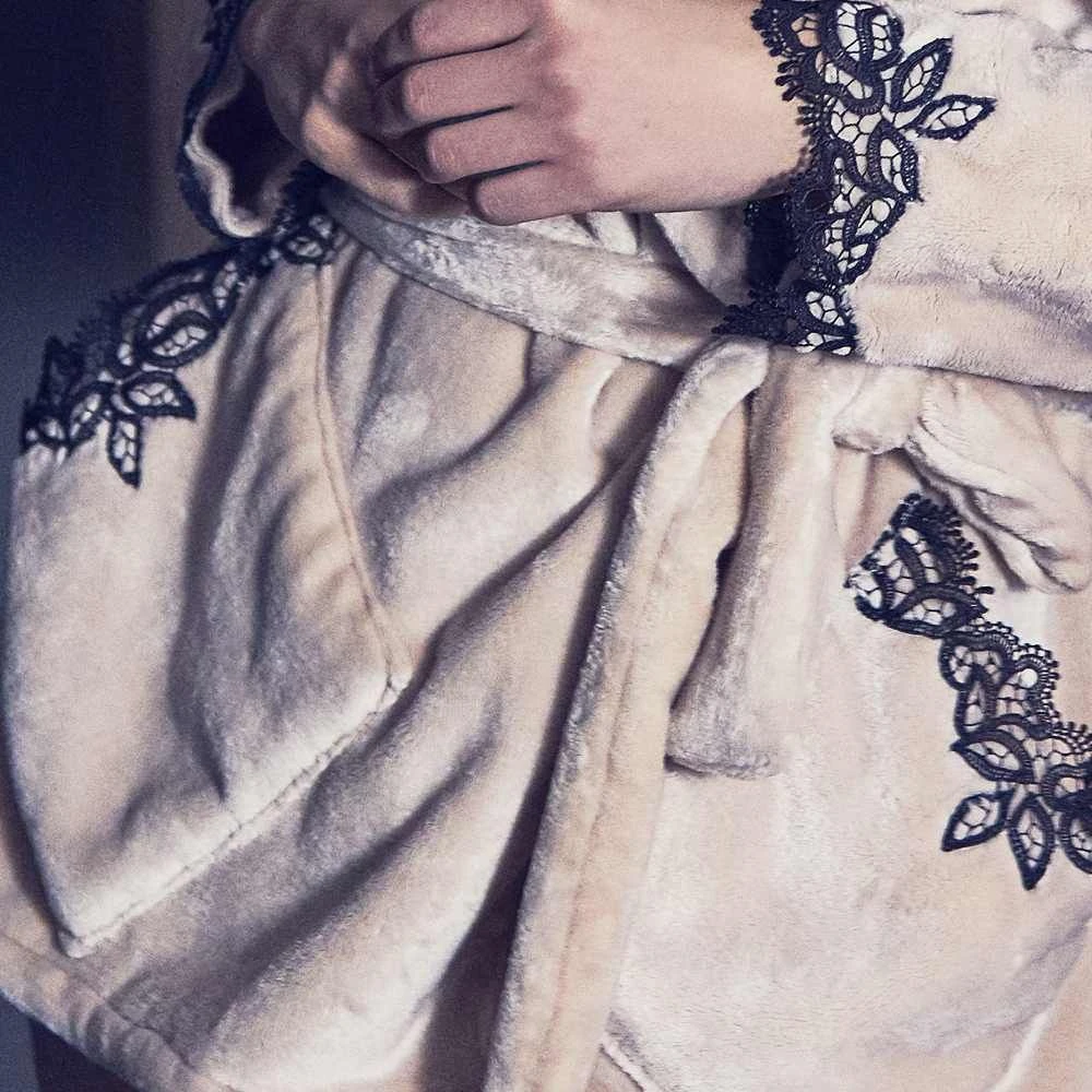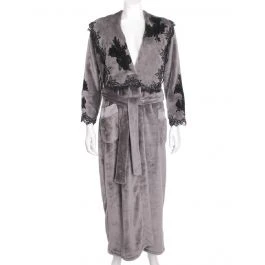 Plüsch-Hausmantel Freda mit Spitze von Marjolaine